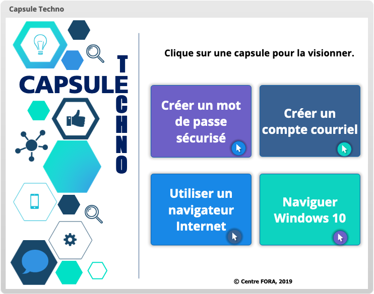 L’outil Capsule TECHNO vise à appuyer l’apprentissage de l’utilisation de la technologie spécifiquement destiné aux personnes apprenantes de faible niveau.