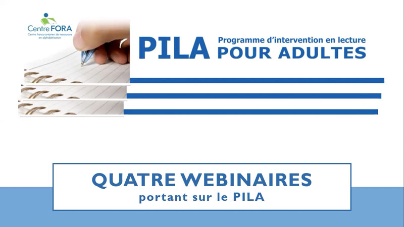 L’équipe du Centre FORA est fière de vous présenter quatre (4) webinaires portant sur le Programme d’intervention en lecture pour adultes (le PILA!)